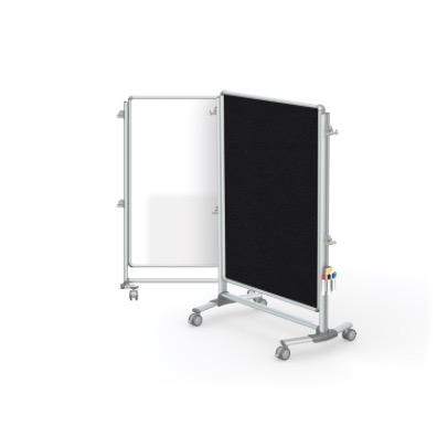 Nexus Jr. Partition, Mobile 2-Sided Porcelain Magnetic Whiteboard/ Fabric Bulletin Board, 46"H x 34"W, Black (Item #: nex223mfp-95-GT)