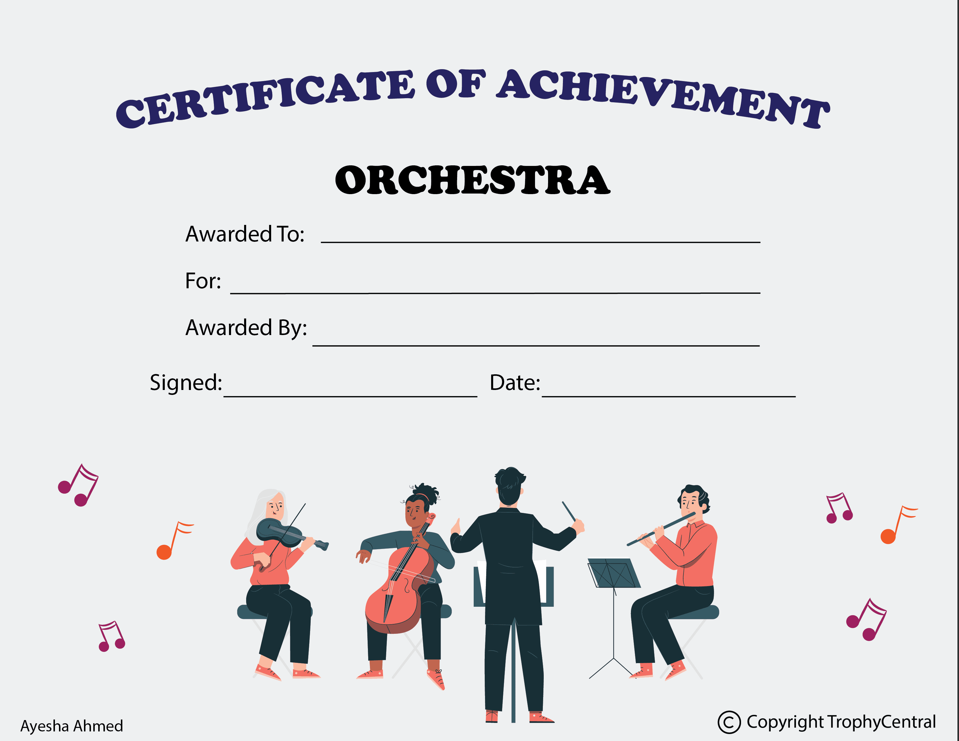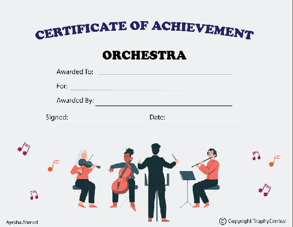 This is an orchestra template designed exclusively for TrophyCentral. It is a perfect way for you to recognize music students! Our free certificates were designed to be printable and use less ink to save you money. Simply press the View Now Button and then right click on the image and select Save File to download it. Orchestra templates measure 8 1/2" x 11". Outstanding for recognizing music skills and dedication. SKU: orchestra-design-a-521-tc.