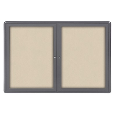Ovation 2 Door Fabric Bulletin Board with Gray Frame, 3'H x 4'W, Beige (Item #: ovg2-f90-GT)