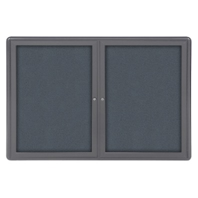 Ghent's Ovation Enclosed Bulletin Board is a sleek, modern take on the traditional message center. The fabric bulletin surface is paired with a powder-coat gray matte frame that suits any environment. The radius frame and soft edges act as a mid-century modern accent, moving away from the more common industrial frame. Ghent's fabric bulletin board hides pin holes while holding announcements and papers tight against the board. The fabric surface is colorfast, so you won't have to worry about the surface fading or wearing down over time. Shatter-resistant acrylic panels make the enclosed board safe, never having to worry about shattered glass or cracking. Full-length piano hinges give the doors additional strength so you can change information on the bulletin surface as often as you need without worrying the hinge will weaken. Each locking board comes with two keys and includes built-in hanging hardware, meaning you can keep your announcements and bulletins secure in public areas. Each board ships to you in Ghent's worry-free packaging, designed specifically for shipping enclosed boards. Ghent's Ovation Enclosed Fabric Bulletin Board carries a 10-year warranty and is made in the USA. Recommended for indoor use only. SKU: ovg4-f91-GT.