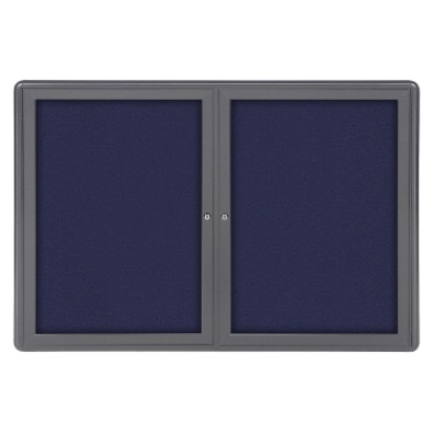 Ovation 2 Door Fabric Bulletin Board with Gray Frame, 3'H x 5'W, Blue (Item #: ovg4-f93-GT)