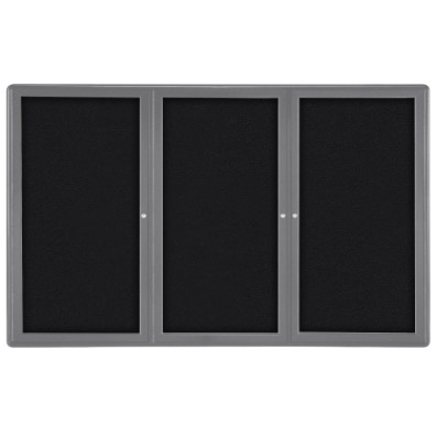Ovation 3 Door Fabric Bulletin Board with Gray Frame, 4'H x 6'W, Black (Item #: ovg5-f95-GT)