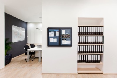 Ghent's Ovation Enclosed Bulletin Board is a sleek, modern take on the traditional message center. The fabric bulletin surface is paired with a powder-coat black matte frame that suits any environment. The radius frame and soft edges act as a mid-century modern accent, moving away from the more common industrial frame. Ghent's fabric bulletin board hides pin holes while holding announcements and papers tight against the board. The fabric surface is colorfast, so you won't have to worry about the surface fading or wearing down over time. Shatter-resistant acrylic panels make the enclosed board safe, never having to worry about shattered glass or cracking. Full-length piano hinges give the doors additional strength so you can change information on the bulletin surface as often as you need without worrying the hinge will weaken. Each locking board comes with two keys and includes built-in hanging hardware, meaning you can keep your announcements and bulletins secure in public areas. Each board ships to you in Ghent's worry-free packaging, designed specifically for shipping enclosed boards. Ghent's Ovation Enclosed Fabric Bulletin Board carries a 10-year warranty and is made in the USA. Recommended for indoor use only. SKU: ovk1-f91-GT.
