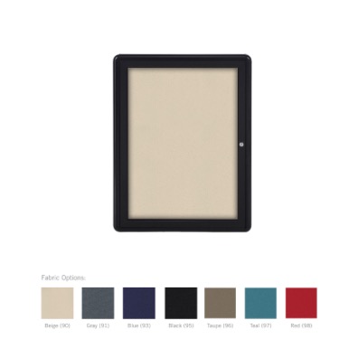 Ghent's Ovation Enclosed Bulletin Board is a sleek, modern take on the traditional message center. The fabric bulletin surface is paired with a powder-coat black matte frame that suits any environment. The radius frame and soft edges act as a mid-century modern accent, moving away from the more common industrial frame. Ghent's fabric bulletin board hides pin holes while holding announcements and papers tight against the board. The fabric surface is colorfast, so you won't have to worry about the surface fading or wearing down over time. Shatter-resistant acrylic panels make the enclosed board safe, never having to worry about shattered glass or cracking. Full-length piano hinges give the doors additional strength so you can change information on the bulletin surface as often as you need without worrying the hinge will weaken. Each locking board comes with two keys and includes built-in hanging hardware, meaning you can keep your announcements and bulletins secure in public areas. Each board ships to you in Ghent's worry-free packaging, designed specifically for shipping enclosed boards. Ghent's Ovation Enclosed Fabric Bulletin Board carries a 10-year warranty and is made in the USA. Recommended for indoor use only. SKU: ovk1-f98-GT.