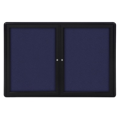 Ovation 2 Door Fabric Bulletin Board with Black Frame, 3'H x 5'W, Blue (Item #: ovk4-f93-GT)