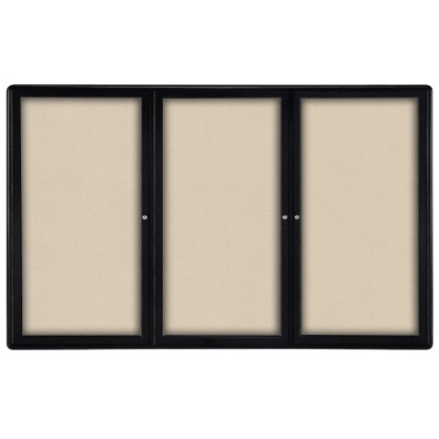 Ovation 3 Door Fabric Bulletin Board with Black Frame, 4'H x 6'W, Beige (Item #: ovk5-f90-GT)