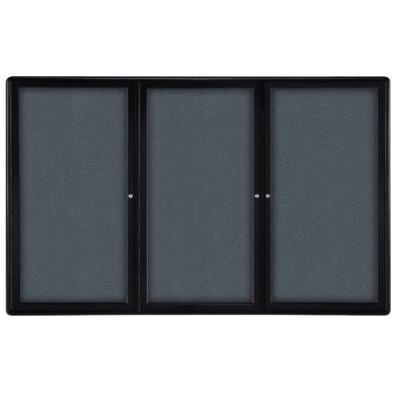 Ovation 3 Door Fabric Bulletin Board with Black Frame, 4'H x 6'W, Gray (Item #: ovk5-f91-GT)