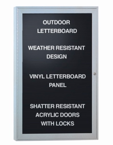 Ghent's Traditional Enclosed Changeable Vinyl Letterboards are weather-resistant for outdoor use when mounted under an awning or overhang. The frame is anodized aluminum in Satin or dark Bronze finish. The 1/4" precision grooved vinyl letter panels feature a sealed back and are available in Black or Burgundy. A set of 3/4" Gothic font white letters, numbers and characters (327 pieces) is included. Doors feature full-length hinges and shatter-resistant acrylic panels with flush mount locks and keys for added security. Concealed corner brackets for easy and secure mounting. Backed by Ghent's 10-year guarantee. SKU: pa13636bx-bk-gt.
