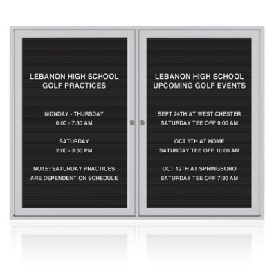 2 Door Vinyl Letter Board with Satin or Dark Bronze Frame, 4'H x 5'W, Black (Item #: pa24860bx-bk-GT)