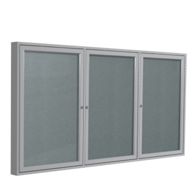 Ghent's Enclosed Vinyl Bulletin Board is the perfect way to display messages, pictures, and important information securely. The message center is made with a vinyl tack surface that hides pin holes and holds up under repeated tacking, providing years of reliable service. When used outside, our vinyl board will not break down or mold, unlike cork enclosed boards. You do not have to worry about damage from weather or humidity as long as you hang the board under an awning or overhang. Ghent's 3-door enclosed bulletin boards are protected using shatter-proof acrylic panels, full-length door hinges, and locks that are flush with the frame. You can install the board in high-traffic, public areas without worrying about damage or tampering. Hidden corner brackets allow the message center to sit flush against the wall without any visible hardware which adds protection from vandalism. The colored vinyl surface is paired with a Satin aluminum frame and includes 2 keys. Ships to you in Ghent's worry-free packaging, designed specifically for shipping enclosed boards. Ghent's Enclosed Vinyl Bulletin Board carries a 10-year warranty and is made in the USA. Perfect for indoor and outdoor use. SKU: pa34872vx-199-GT.