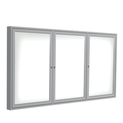 3 Door Enclosed Porcelain Magnetic Whiteboard with Satin or Dark Bronze Frame, 4'H x 8'W (Item #: pa34896m-m1-GT)