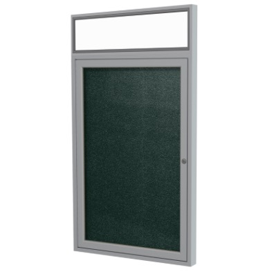 Ghent's Illuminated Headliner Enclosed Vinyl Bulletin Boards feature a sealed back vinyl for outdoor applications when mounted under an awning or overhang. The self-healing fabric-backed vinyl is available in 10 colors. The doors feature shatter-resistant acrylic panels, full-length hinges, flush mount locks and two keys. The frame is anodized aluminum in Satin or dark Bronze finish. The lighted header is a 6" opaque acrylic lens to accommodate your organization's name or logo. Standard lettering is uppercase and lowercase black Helvetica, centered and sized to the requested name. Units feature concealed corner brackets for easy and secure mounting. Backed by Ghent's 10-year guarantee. For outdoor use when mounted under an awning or overhang. SKU: pavlx2-183-GT.