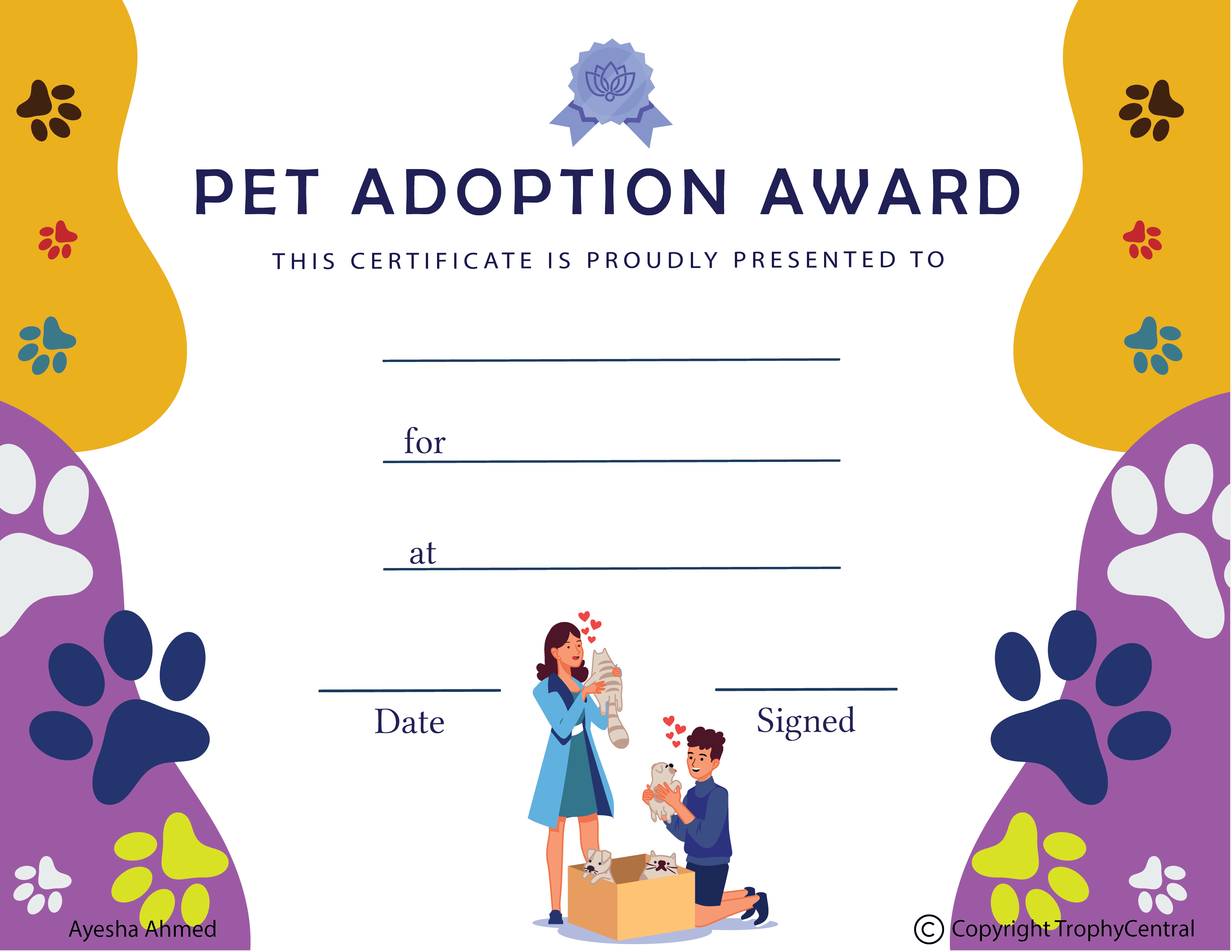 Free Pet Adoption Certificate Template (Item #: Pet-Adoption-Award-tc)