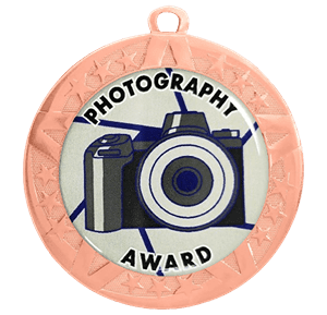 These photography insert medals feature a 2 3/4 inch bronze frame with a colorful 2 inch epoxy dome subject sticker. Each medal also includes a red, white and blue neck ribbon. Optional personalization on back. Outstanding for recognizing photography skills and dedication. Ships from: Marquette, Michigan. SKU: photography-jibf-tc.