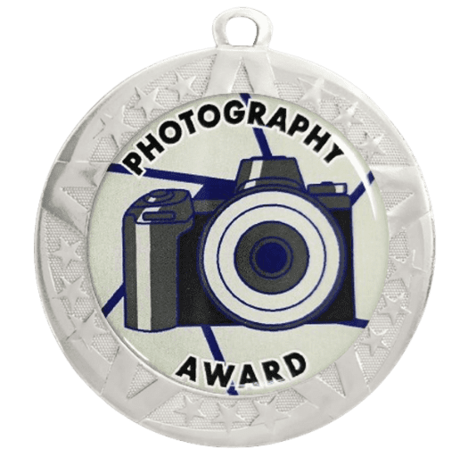 These photography insert medals feature a 2 3/4 inch silver frame with a colorful 2 inch epoxy dome subject sticker. Each medal also includes a red, white and blue neck ribbon. Optional personalization on back. Outstanding for celebrating photography skills and dedication. Ships from: Marquette, Michigan. SKU: photography-jisf-tc.
