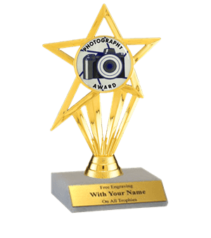 This insert participation trophy features a slant-front white marble base with a gold insert holder and 2" Photography insert. Measures approximately 5 1/2" - 6" tall. Outstanding for honoring photography skills and dedication. Ships from: Marquette, Michigan. SKU: insert-participation-photography-tc.