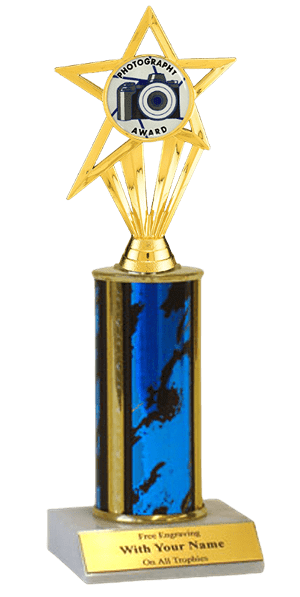 Customers love the traditional design of this photography award which is appropriate for recognition and events of all sorts. Our Elite Series includes a real marble base with a slant-front and up to 3 lines of free personalized engraving. Choice of 4 sizes and many column colors. Topper: Photography Insert. Outstanding for acknowledging photography skills and dedication. Ships from: Marquette, Michigan. SKU: insert-column-photography-tc.