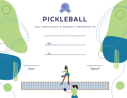 Pickleball Award Certificate - Free Template - Women's Singles (Item #: pickleball-womens-singles-tc)