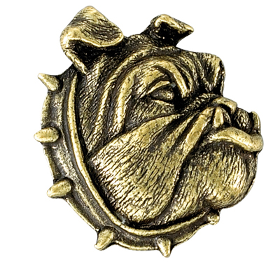Our Bulldog lapel pins feature a fabulous antique bronze finish and a clutch-pin back for easy attachment to clothing. Ideal for school letter jackets. Ships from: Mount Vernon, New York. SKU: pm28-cm.