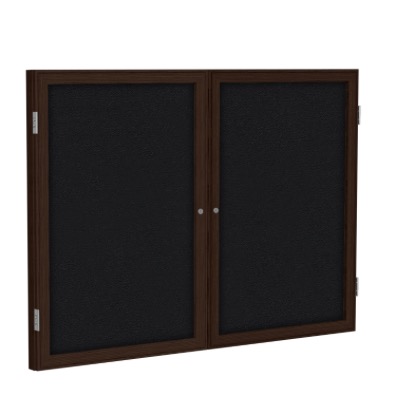 2 Door Fabric Bulletin Board with Walnut Wood Frame, 3'H x 5'W, Black (Item #: pn23660f-95-GT)