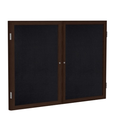 2 Door Recycled Rubber Bulletin Board with Walnut Wood Frame, 4'H x 5'W, Black (Item #: pn24860tr-bk-GT)