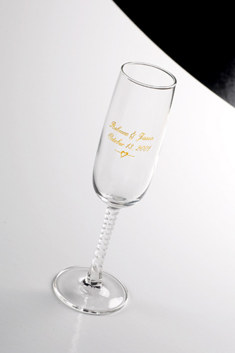 Greet each guest at your celebration with a glass of champagne they can take home as a keepsake. Choose from black, gold, silver, baby blue, or baby pink ink. Minimum order 12. SKU: gc180-jds.