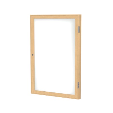 1 Door Enclosed Porcelain Magnetic Whiteboard with Oak Wood Frame, 24"H x 18"W (Item #: pw12418m-m1-GT)