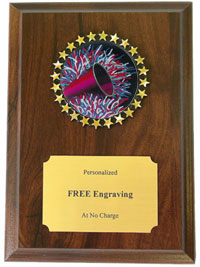 This stunning Cheerleading Plaque boasts a cherry finish and colorful 2 inch Holographic decal. Each Cheerleading plaque measures 5 x 7 inches and includes three lines of free text personalized engraving! This is a quick-ship item and typically leaves our factory in a fast 1-2 business days. This recognition item is well-priced and will make a great impression on your Cheerleading award recipient.Hang with pride to celebrate team spirit and athletic cheerleading performance. Ships from: Marquette, Michigan. SKU: quickinplaquecheerleading -QT.