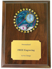 This stunning Swimming Plaque boasts a cherry finish and colorful 2 inch Holographic decal. Each Swimming plaque measures 5 x 7 inches and includes three lines of free text personalized engraving! This is a quick-ship item and typically leaves our factory in a fast 1-2 business days. This recognition item is well-priced and will make a great impression on your Swimming award recipient. Perfect for swimming season competitions and meet awards. Ships from: Marquette, Michigan. SKU: quickinplaqueswimming-qt.