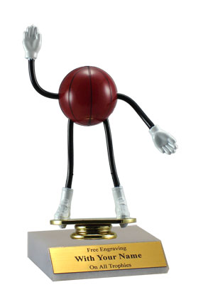 Arms & legs bend on this very popular award! Includes real marble base with slant-front. Measures approximately 5". Also available with a column. Ideal for basketball season competitions and playoff celebrations. Ships from: Marquette, Michigan. SKU: qtbaskbenc.