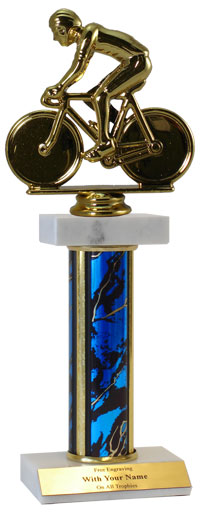 The timeless style makes this deluxe trophy perfect for virtually any occasion. Platform: Double white marble (one for column, one for base); Sizes / Colors: Multiple; personalization Free!; Event / Topper: Bicycle; Keywords: Biker, Cyclist; Ships from: Marquette, Michigan. SKU: qsbikedm-qt.