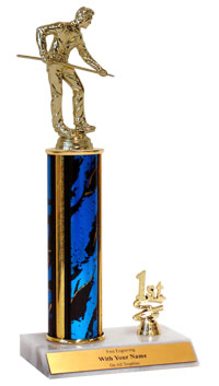 Our 1st, 2nd or 3rd place Billiards Place Trim Trophies feature choice of column size and color - ideal for leagues and contests with multiple winners. Includes real white marble base; Ships from: Marquette, Michigan. SKU: qsbillipl-qt.