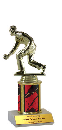 Our single column Elite Series trophies boast a real marble base with a slant-front and free personalization (up to 3 lines). Available in 4 sizes and with choice of color! Top Figure: Bocce Player; Ships from: Marquette, Michigan. SKU: qsboccesc-qtt.