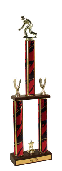 This awesome bocce ball two tier championship trophy measures approximately 26-28 inches tall and is sure to be proudly displayed by your award recipient. Includes a wood base, center cup and side eagles. Includes personalization! Magnificent for recognizing excellence and victory. Ships from: Marquette, Michigan. SKU: qsboccettw-qtt.