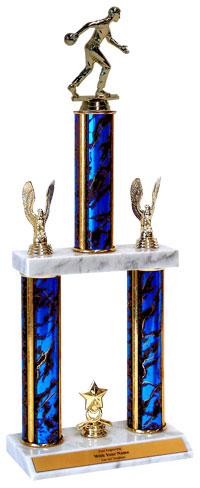 Our impressive Winners Line Trophy boasts two gold eagles, a star trim, choice of column color & size, marble bases and free personalization! Perfect for special bowling events and tournaments. Subject / Figure: Bowling. Ships from: Marquette, Michigan. SKU: qsbowltt-qt.