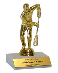 Our inexpensive, but high-quality classic participation trophy is ideal for those on a tight budget! Platform: Genuine white marble with slant front; Size: 5 1/2 - 6 inches; Personalization free!; Shipping: 1-2 business days from Marquette, MI; Figurine: Broomball; SKU: QSBROOMNC-QTT.