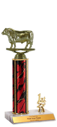Our 1st, 2nd or 3rd place trim trophies feature choice of column size and color - ideal for events and contests with multiple winners. Includes real white marble base and 3 lines of personalization; Ships from: Marquette, Michigan. SKU: qsbullpl-qtt.