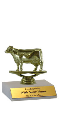 Our inexpensive, but high-quality classic participation trophy is ideal for those on a tight budget! Platform: Genuine white marble with slant front; Size: 5 1/2 - 6 inches; Personalization free!; Figurine: Cow; Ships from: Marquette, Michigan. SKU: qscownc-qtt.