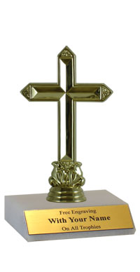 Our inexpensive, but high-quality classic participation trophy is ideal for those on a tight budget! Platform: Genuine white marble with slant front; Size: 5 1/2 - 6 inches; Personalization free!; Figurine: Religious; Ships from: Marquette, Michigan. SKU: qscrossnc-tc.