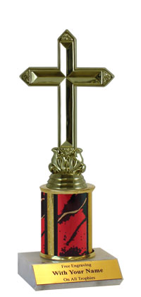 Customers love the versatile design of this award which is appropriate for leagues, outings and contests of all sorts. Our Elite Series includes a real marble base with a slant-front and free personalized engraving (up to 3 lines). Choice of 4 sizes and column colors. Top Figure: Religious. Ships from: Marquette, Michigan. SKU: qscrosssc-tc.