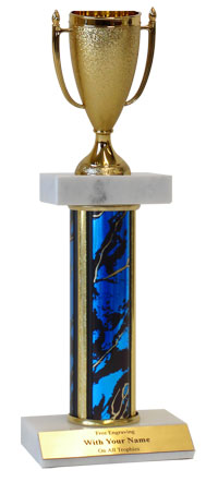 The enduring style of our Double Platform Series makes this trophy fitting for practically all events and ages. Features marble column and figure (gold cup) bases, choice of 3 sizes and free personalization! Keywords: Winner, General Award. A great choice for acknowledging excellence and victory. Ships from: Marquette, Michigan. SKU: qscupdm-qt.