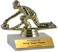 Our inexpensive, but high-quality classic participation trophy is ideal for those on a tight budget! Platform: Genuine white marble with slant front; Size: 5 1/2 - 6 inches; Personalization free!; Figurine: Curling; Ships from: Marquette, Michigan. SKU: qscurlnc-qt.