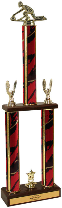 Two-Tier Championship Trophy w/ Wood Base - Curling (Item #: qscurlttw-tc)