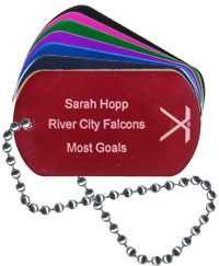 This is by far the least expensive way to personalize awards for a sports team or any other group of children. The turnaround time from Trophy Central on this item is amazing! Also, for younger kids (even up to 6th grade), it seems to be a big hit. Also, having the individual dog tags engraved (as opposed to a "sticker" added to a dog tag) is awesome. Highly recommended.