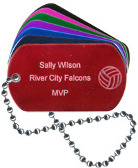 This is by far the least expensive way to personalize awards for a sports team or any other group of children. The turnaround time from Trophy Central on this item is amazing! Also, for younger kids (even up to 6th grade), it seems to be a big hit. Also, having the individual dog tags engraved (as opposed to a "sticker" added to a dog tag) is awesome. Highly recommended.