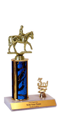 Our equestrian place trim trophies (1st, 2nd, 3rd) feature choice of column size and color - ideal for leagues and contests with multiple winners. Includes real white marble base and 3 lines of personalization; Ships from: Marquette, Michigan. SKU: qsequestpl-qtt.