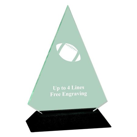 The Football Acrylic Triangle Award measures approximately 7 inches tall and includes up to 4 lines of personalization! The unique design is sure to make an impression at your next event or award ceremony! Quick 1-2 day shipping from factory. Perfect for football season recognition and championship honors. Ships from: Marquette, Michigan. SKU: qsfoottr-tc.
