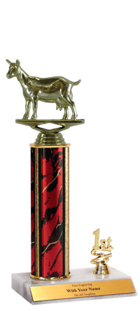 Top winners of a goat show will enjoy this quality trophy. Customize this award with the year and have it engraved with information on the event and winner. Up to three lines or personalization is included in the price. Feature a gold event year trim and real marble base. This fashionable goat award is sure to bring back memories of your event for years to come! Magnificent for honoring excellence and victory. Ships from: Marquette, Michigan. SKU: qtgoatyr-qtt.