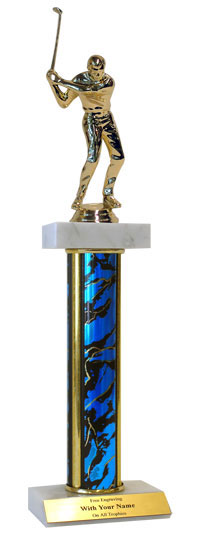 The timeless style makes this deluxe trophy perfect for virtually any golf outing or event. Platform: Double white marble (one for column, one for base); Sizes / Colors: Multiple; Personalization Free!; Event / Topper: Golf; Keywords: Golfer; Looking for something different? See all of our golf trophies. Great for golf season events and tournament recognition. Ships from: Marquette, Michigan. SKU: qsgolfdm-qt.