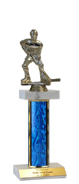 The timeless style makes this deluxe trophy perfect for virtually any occasion. Platform: Double white marble (one for column, one for base); Sizes / Colors: Multiple; personalization Free!; Event / Topper: Ice Hockey; Keywords: Hockey Player; Ships from: Marquette, Michigan. SKU: qshockdm-qt.